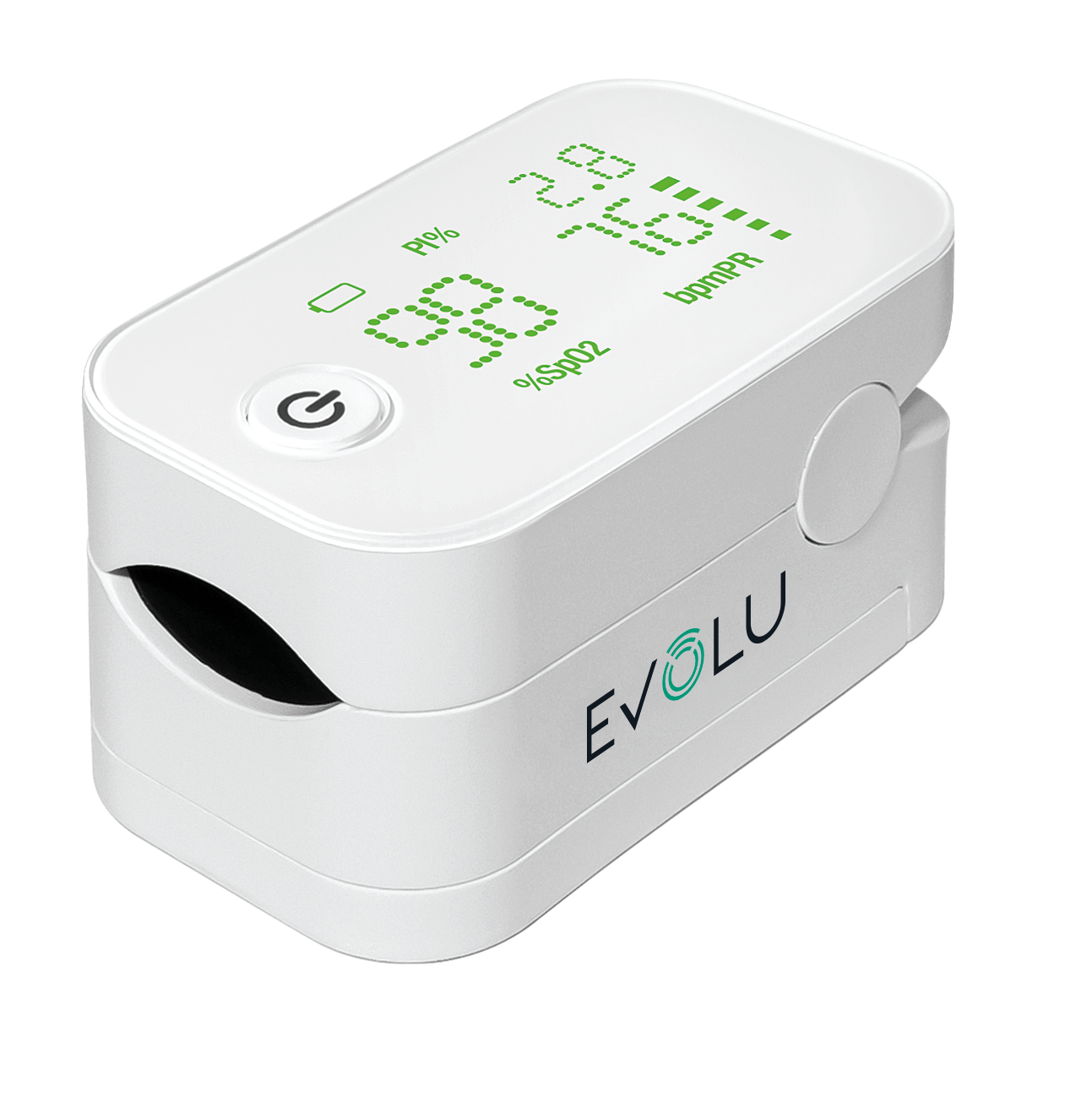 EVOLU PULSOKSIMETRAS skirtas matuoti hemoglobino procentą žmogaus arteriniame kraujyje ir širdies susitraukimų dažnį ant piršto, tais atvejais, kai būtina žinoti deguonies lygį – prieš ir po fizinio krūvio ar sporto, pavyzdžiui, bėgimo, žygių ar važiavimo dviračiu, arba lėktuvo skrydžio metu.